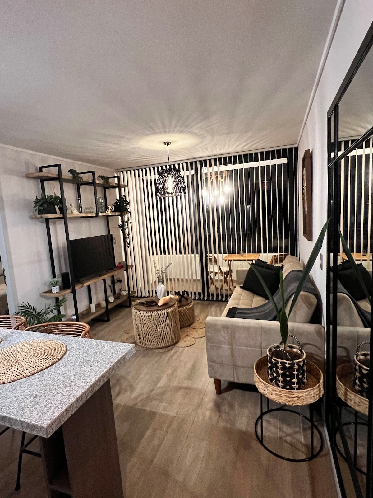 Departamento de un dormitorio, un baño y, un estacionamiento, completamente amoblado, con todo lo necesario para disfrutar de una grata estadía. Consta de una cama de dos plazas (en dormitorio) y un futón en la sala. Consultar de requerir utilizar el futón ya su uso tiene costo adicional por concepto de ropa de cama. Cercano a centros comerciales (Mall), supermercados, parques, áreas verdes, playas, aeropuerto, y otros puntos de interés.