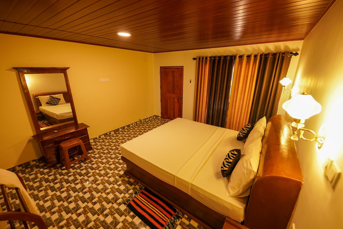 Ven a disfrutar de la paz y la tranquilidad de nuestro pequeño centro vacacional rodeado de naturaleza. Es un lugar ideal para explorar la zona. A pie puedes caminar hasta el famoso templo de roca, pasear por un hermoso lago o simplemente cruzar la carretera y caminar sobre la gran formación rocosa para disfrutar del amanecer o la puesta de sol. Cada habitación tiene un balcón donde podrás disfrutar del canto de los pájaros y observar monos, mangostas y ardillas. El desayuno, el almuerzo y la cena se pueden tomar en el pequeño restaurante del jardín.