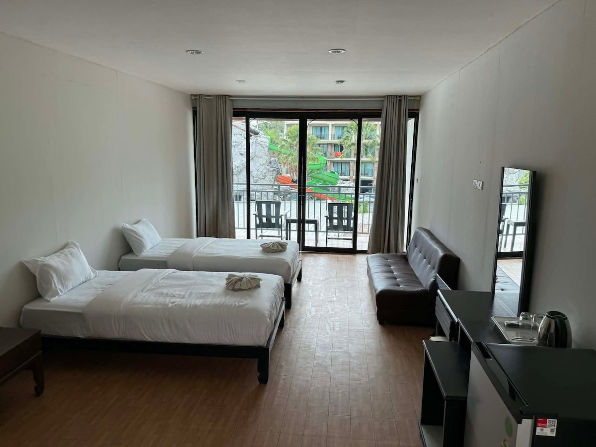 For guests hoping to see breathtaking sunsets, the Silk Ao Nang Condo is conveniently located just 300 meters from Ao Nang Beach. Situated in the centre of Ao Nang, around restaurants, retail stores and services like booking a tour. This unit offers a sea view due to its location on a gorgeous lower hill slope, which is easily accessible by walking or free shuttle service. Additionally, you have access to the swimming pool, a fitness centre, and free WiFi, making it ideal for family holidays.