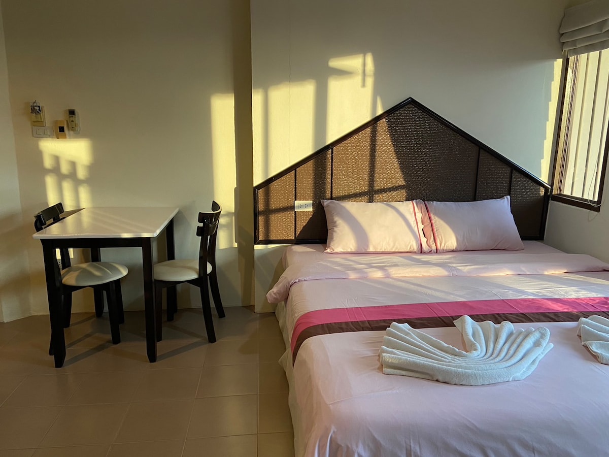 Situado en una zona residencial tranquila de Aonang. Todo lo que necesitas está a 15 minutos a pie: restaurantes, servicio de lavandería, cafeterías, tiendas, alquiler de scooters y coches, agencias de viajes. Habitación tipo estudio con aire acondicionado y muebles, baño privado con calentador de agua, cocina con nevera y mesa de comedor, sofá, aparcamiento gratuito y wifi.