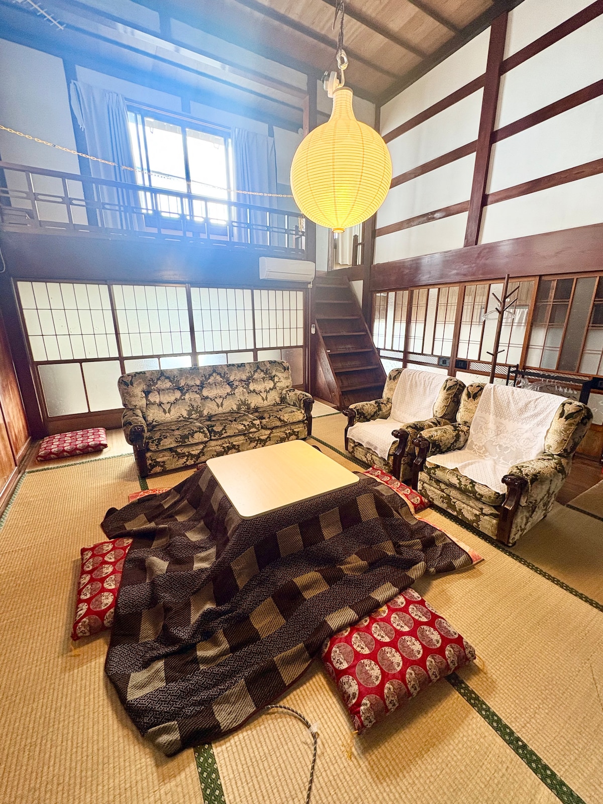 ¡Nuevo abierto! La casa japonesa tradicional llamada “KOMINKA” se encuentra a solo 2 minutos caminando desde la salida oeste de la estación JR Echigoyuzawa. A solo 70 minutos de Tokio en Joetsu Shinkansen. Hay muchos restaurantes increíbles, spas, tiendas de recuerdos, todo a poca distancia a pie. “KOMINKA” tiene sala de estar, comedor, cocina, baño y dos inodoros en el primer piso, y 3 dormitorios de estilo japonés en el segundo piso. *Siempre puedes hacer un viaje en autobús gratuito a todas las áreas de esquí desde la estación de Echigoyuzawa.