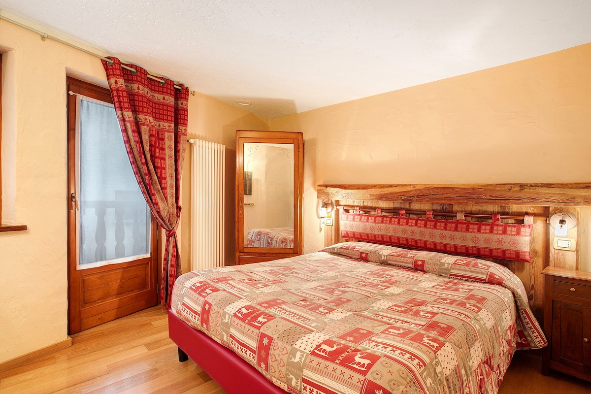 La habitación Stambecco, distribuida en dos niveles, combina comodidad y encanto de montaña para alojar hasta 3 personas. Ubicada en Charvensod, disfrutaréis de unas vistas impresionantes a los Alpes y un ambiente cálido y acogedor. Cuenta con dormitorio, baño, Wi-Fi, TV, cuna y trona bajo petición. El balcón privado es ideal para relajaros al atardecer, y el jardín compartido os acerca aún más a la naturaleza. La habitación no dispone de aire acondicionado.