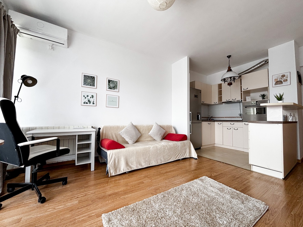 Este moderno y distintivo apartamento de un dormitorio ofrece vistas espectaculares del horizonte de la ciudad. Tiene una ubicación privilegiada, situada a solo 2 minutos a pie del centro comercial Iulius. Se compone de un dormitorio con una cama doble (sin puerta), una sala de estar con un sofá cama extraíble (cama para 3º y 4º huéspedes), una cocina totalmente equipada, un baño y un balcón panorámico. El lujoso edificio residencial ofrece estacionamiento en el lugar, seguridad las 24 horas, jardín privado y mucho más.