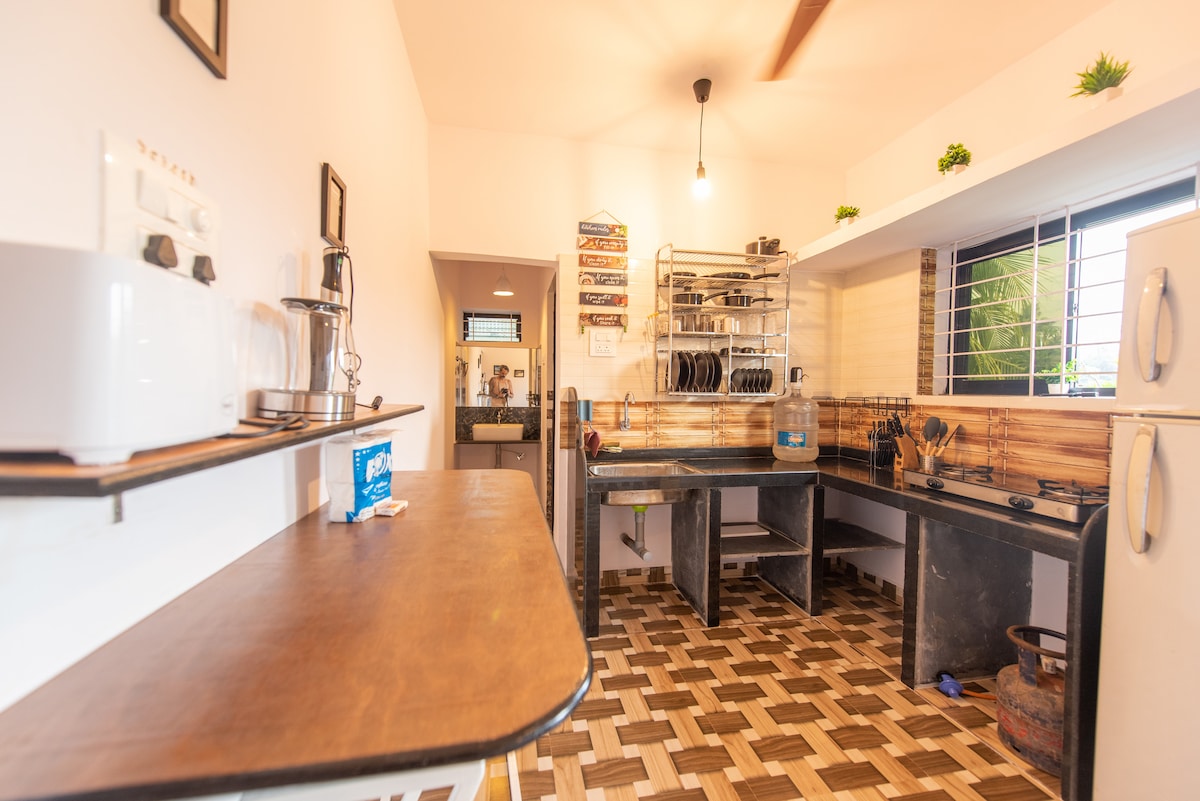 Acogedor escondite en el norte de Goa: ¡Playa, balcones y encanto local! Imagina despertarte con los suaves sonidos de la naturaleza, beber tu café de la mañana con una vegetación exuberante y una colina a la vista. Bienvenido a tu escapada de ensueño en Goa, donde la comodidad acogedora se une a la magia de la vida tropical. Amplia y espaciosa, esta casa te dará la oportunidad de recargar energías, reconectar y disfrutar del encanto de Goa, ideal para vacaciones, estancias o estaciones de trabajo. Te damos la bienvenida a Gezellig, la segunda unidad de Mogachestays.goa.
