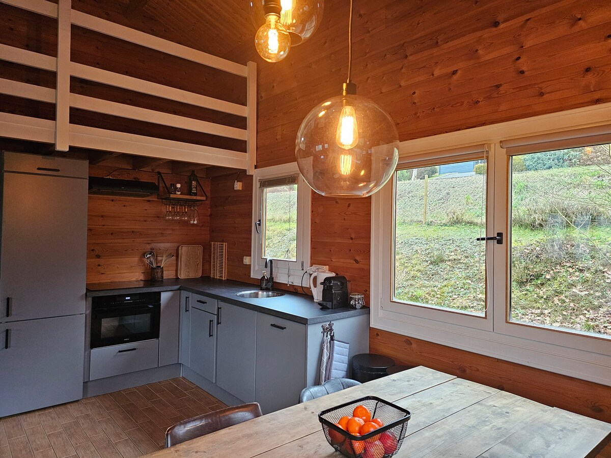 Nuestra casa de campo ecológica, construida completamente de madera, combina el lujo con el respeto por el medio ambiente. Diseñado para ofrecer comodidad y privacidad, tiene capacidad para dos personas en un entorno natural excepcional, en Les Mazures, cerca del lago Vieilles Forges. Encontrarás un ambiente cálido, ideal para recargar las pilas con total serenidad, rodeado de naturaleza virgen. Hay un jacuzzi en la terraza y bicicletas eléctricas disponibles.