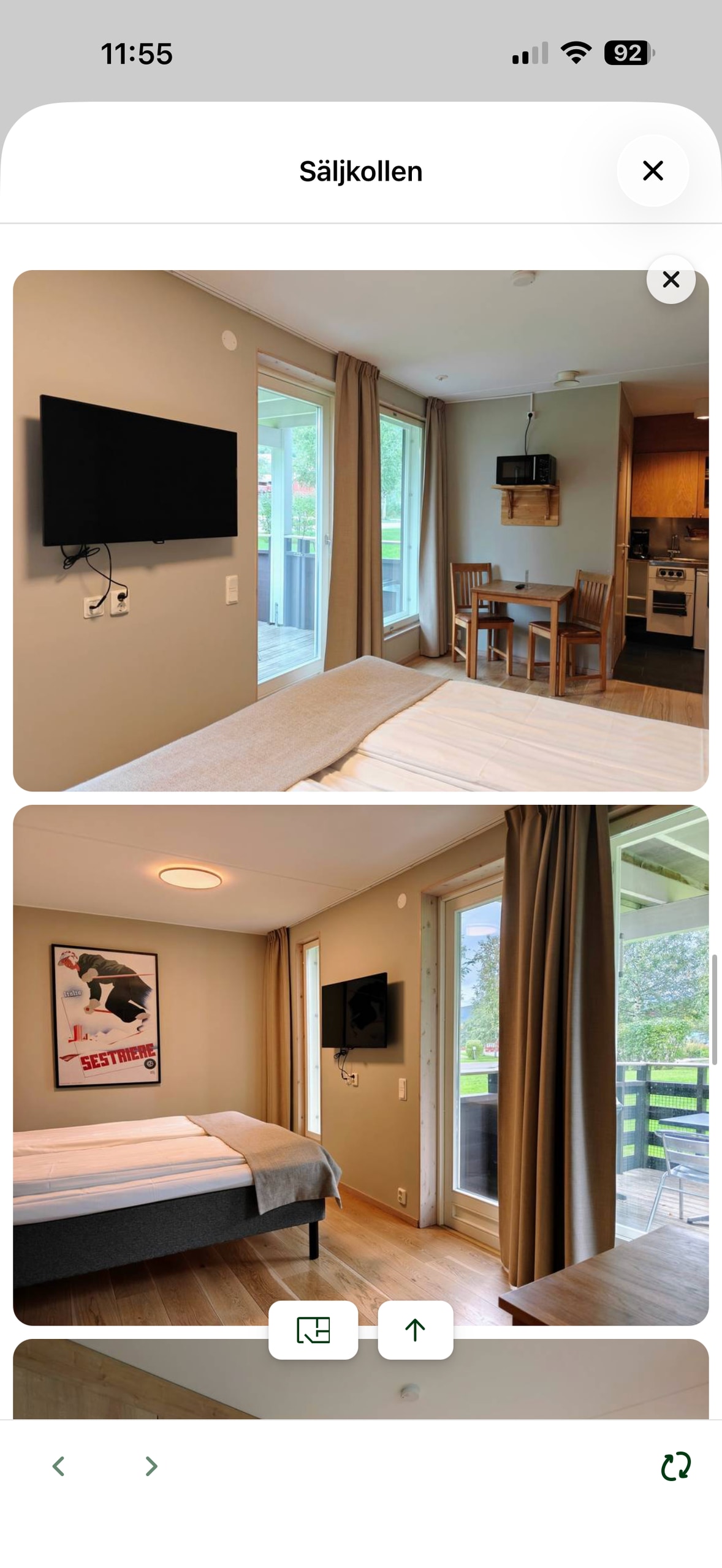 House (25 sqm). Private entrance, toilet, shower cabin & washing machine. The price includes bed linen, towels & final cleaning. One large room with a bed (140 cm), sofa (which can be used as a bed), desk. NO KITCHEN but there is a small refrigerator, micro & water boiler. As a hotel room - larger. Good storage and drying facilities. WIFI, TV with apple TV. Own part of patio. Not shoveled in winter. Parking space - by house. "Trixy" driveway up, due to road conditions.