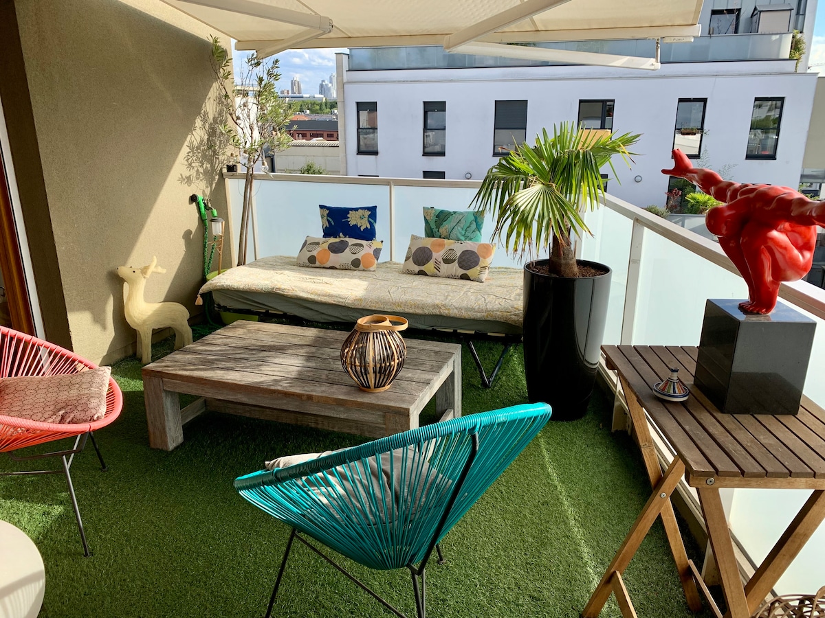 90 m². Este acogedor apartamento está a solo 10 minutos de París. A 100 m del metro, a 1 km del Stade De France y del aeropuerto de París CDG. Ideal para una familia de 4 miembros. Estacionamiento en el sótano. 2 excelentes terrazas en el quinto piso para ver el mundo desde arriba ;-)