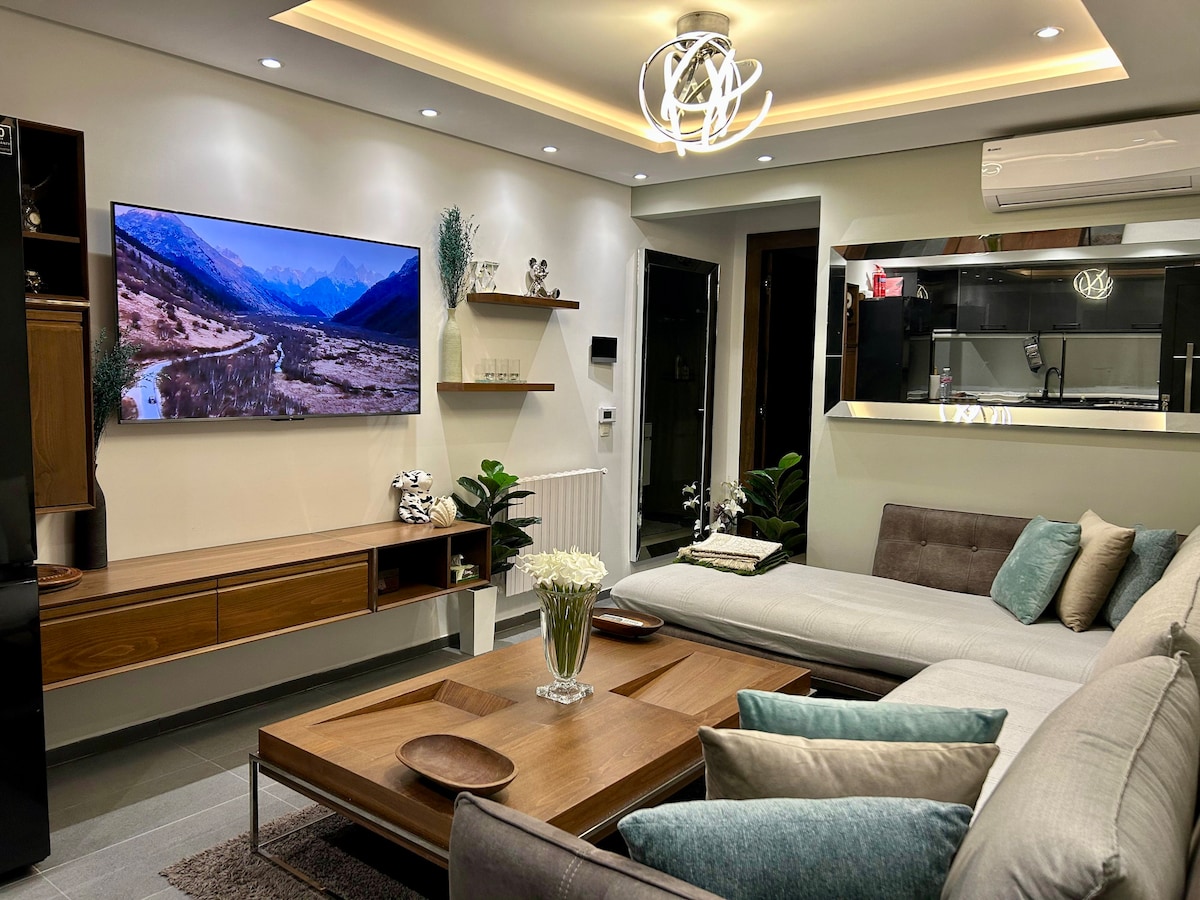 Apartamento nuevo, lujoso y perfectamente ubicado en Ennasr, en una residencia moderna y segura justo detrás de la clínica Amilcar. Disfrute de una luminosa sala de estar con TV grande, IPTV/Netflix y una elegante zona de comedor. La habitación ofrece una cama premium, bonitos armarios y un segundo televisor. Cocina moderna totalmente equipada, baño elegante de mármol. Fibra de alta velocidad, aire acondicionado en cada habitación, electrodomésticos nuevos y estacionamiento privado. Un entorno elegante y cómodo para una estancia inolvidable.