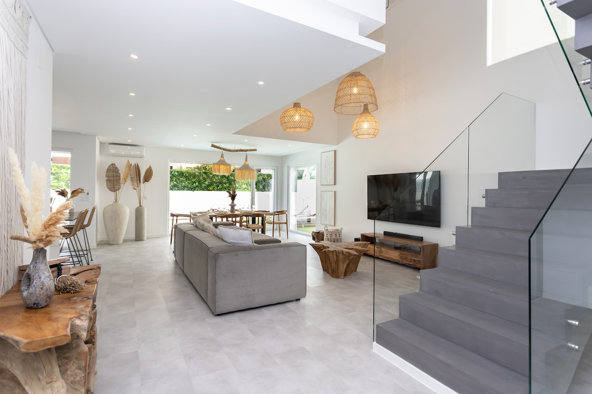 El Pool Pavilion es un acogedor y relajado espacio de dos suites y cocina con vistas a un exuberante jardín y es la opción ideal para una escapada alegre y relajante. Decorado con un alto nivel de materiales sencillos pero sofisticados, como suelos de microcemento, paredes de estuco y cortinas de lino, y decorado con colores naturales relajantes, se combina armoniosamente con su entorno. Las grandes puertas del patio conducen a un amplio jardín privado con cubierta de madera, piscina climatizada, tumbonas y mesa.