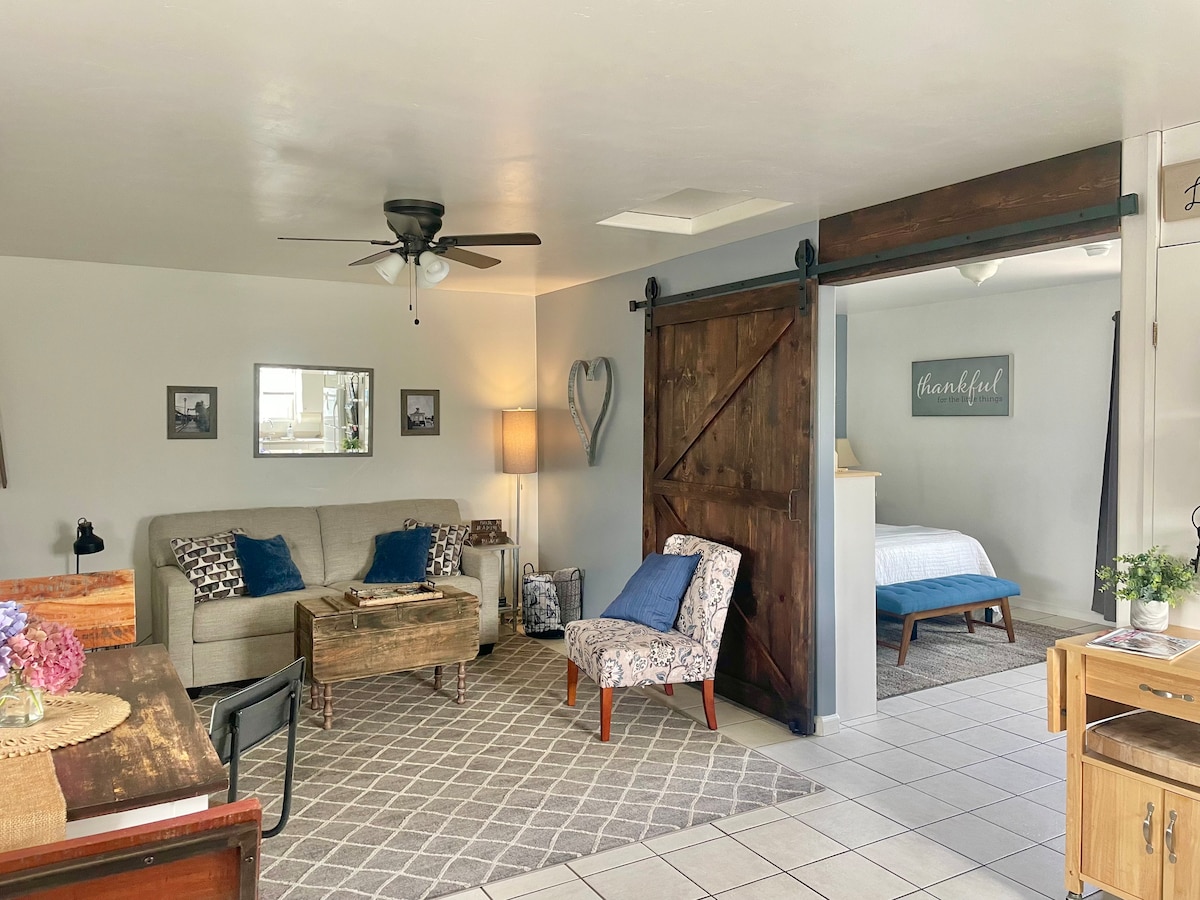 ¡Excelente ubicación! Estamos a 4 millas de la playa y en el centro de las bodegas y cervecerías locales. Puedes ir caminando literalmente al pueblo de Arroyo Grande. Se admiten mascotas, sin embargo, no se admiten mascotas los fines de semana del 4 de julio o de Nochevieja debido a los fuegos artificiales locales. Ponte en contacto con nosotros primero si tienes un amigo peludo. El baño está conectado al dormitorio. Los huéspedes adicionales tendrán que pasar por el dormitorio para usarlo.