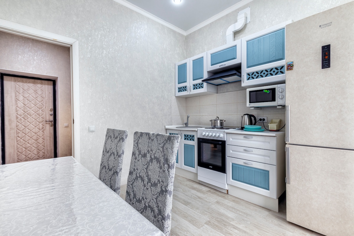 Un acogedor apartamento de un dormitorio en el centro de Astana, ubicado cerca de: Expo 2017, Monumento Baiterek. Con vistas al parque botánico desde la ventana. La entrada al apartamento es por un código individual. Los huéspedes disponen de pantuflas, suministros desechables (champú, gel de ducha, almohadillas de algodón, palos para los oídos, etc.), secador de pelo, televisor inteligente, aire acondicionado, wifi. Área de cocina con todos los electrodomésticos necesarios: platos, microondas, estufa, hervidor, nevera. Cómoda cama con colchón ortopédico.