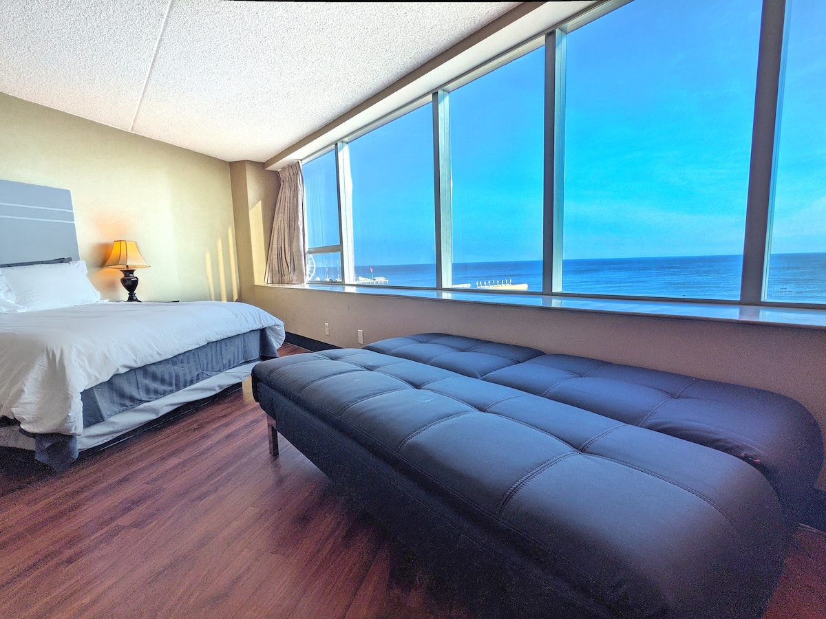 Imagina despertar todas las mañanas en Atlantic City con vistas impresionantes del océano brillante, nubes blancas e hinchadas flotando... Después de un día lleno de diversión disfrutando de la playa, el paseo marítimo y los muelles, regresando al condominio para ver las luces del casino encenderse antes de salir a disfrutar de la famosa vida nocturna de AC... ¡Ahora puedes hacerlo! ¡Nuestro estudio frente al mar está listo para ayudarte a disfrutar y explorar lo mejor de Atlantic City!