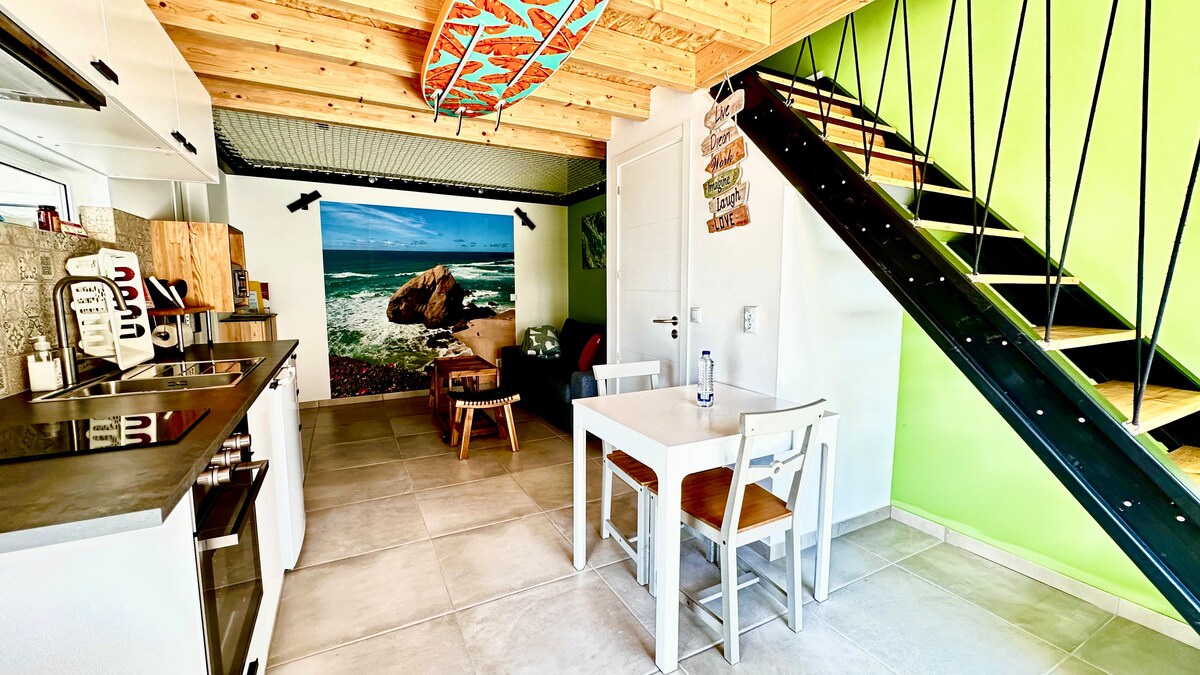 Un espacio cuidadosamente diseñado para proporcionar comodidad y privacidad. La zona principal es un gran espacio cubierto, que une dos ambientes distintos: Por un lado, una acogedora suite perfecta para que las parejas descansen Por otro lado, un área independiente con baño, cocina equipada, pequeña sala de estar y un dormitorio en la entreplanta con dos camas. Esta configuración única permite libertad y que cada uno tenga su propio ritmo. Un equilibrio entre unidad y libertad, con un intercambio común. Playas cerca de Lisboa
