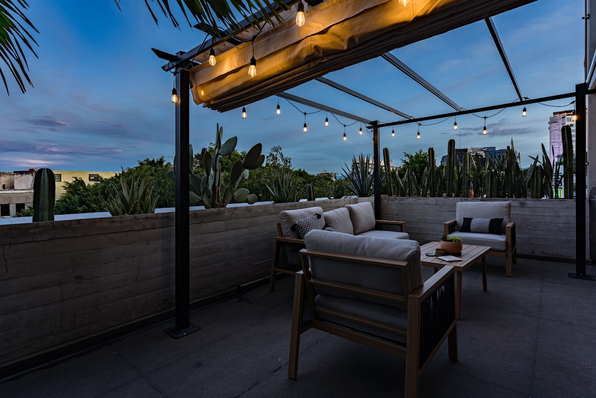 Azotea radiante de 2 dormitorios en Condesa Central con aire acondicionado y piscina