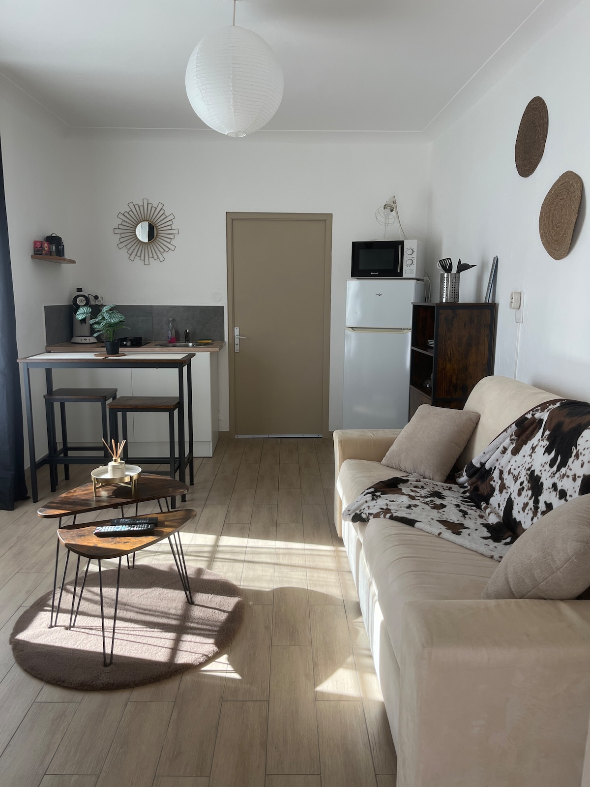 Situé au cœur du village d'Arvieu et à 10 min en voiture de la plage du Lac de Pareloup, avec commerces et départs de randonnée à proximité, cet appartement chez Armandine et César dispose d'une entrée indépendante. Au premier étage, accessible par un escalier, il offre une pièce de vie lumineuse avec lit double et lit d'appoint, kitchenette équipée et table à manger. Grande salle de bain avec baignoire, douche et WC séparé. Terrasse privative ensoleillée de 25 m².