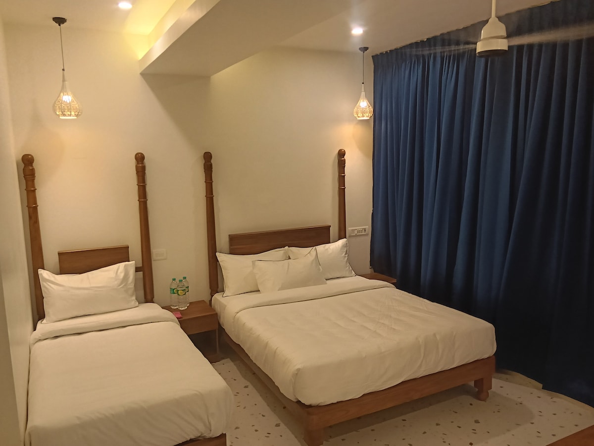 Descubre la calma y el carácter en Vinshim's Ubicado en la tranquila belleza del diseño inspirado en Kerala, Vinshim's ofrece un refugio sereno a solo 2 km de JIPMER. Es el lugar perfecto para descansar, reflexionar y rejuvenecer. Desde sus techos de tejas inclinados hasta cálidos detalles de madera, Vinshim combina el patrimonio tradicional con la comodidad moderna. Cada habitación es espaciosa, privada y está cuidadosamente amueblada, por lo que es una opción ideal para familias, parejas o viajeros solitarios que buscan una estancia tranquila en Pondicherry.