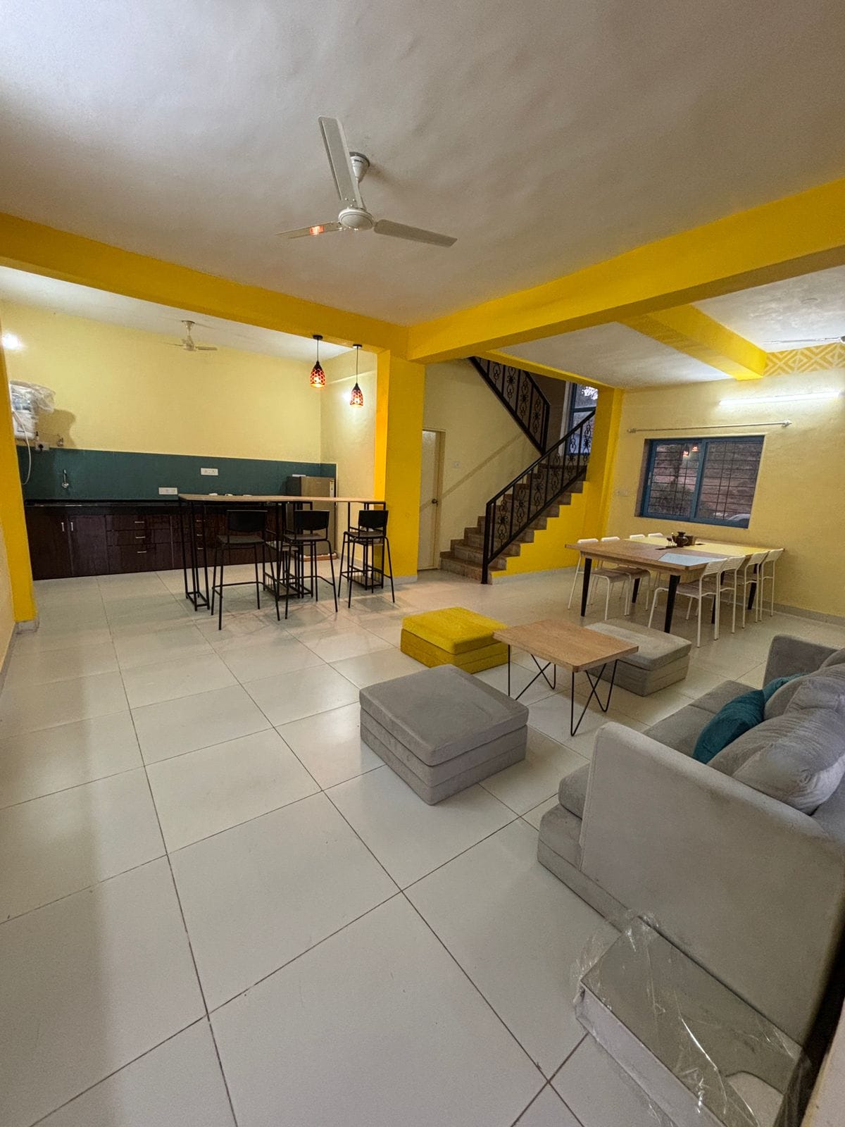 Situada en la cima de una colina con vistas a las exuberantes cordilleras verdes de Sahyadri, se encuentra esta hermosa y acogedora villa de 4 dormitorios. Una escapada perfecta para ti y tu familia explorando la naturaleza, este alojamiento está a solo una hora en coche del caos de las ciudades. Relájate con toda la familia en este alojamiento tranquilo.