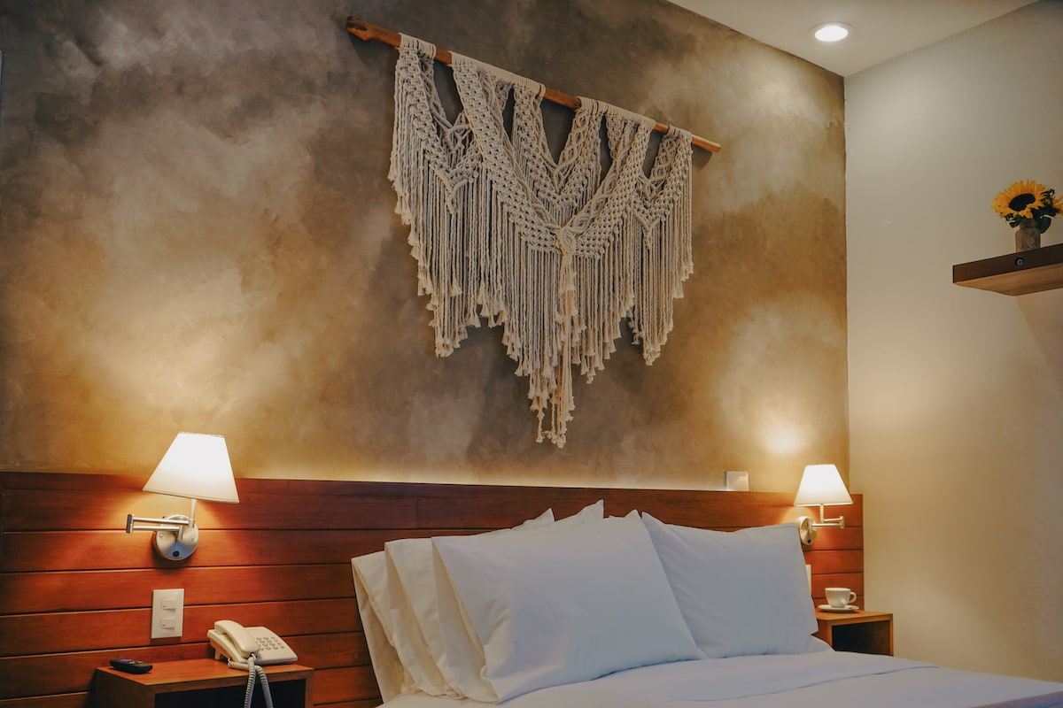 No querrás irte de este lugar tan único y encantador. Habitación doble con cama Queen Size. Bonita habitación con vista al jardín. Cuenta con: Wi-Fi WC Ducha Closet Plancha Mesita para planchar Secadora de cabello Set de toallas Caja fuerte Amenidades de baño.