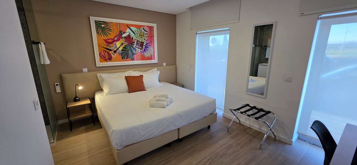 Este moderno apartamento con cama tamaño king es una excelente opción para una pareja de viaje. El cálido entorno ofrece una estancia única cerca del centro principal de Aveiro. Este departamento forma parte de un edificio extraordinariamente de alta gama y completamente nuevo cerca de la estación de tren, las paradas de autobús, el centro comercial y las zonas de estacionamiento gratuitas. Puedes comprar fácilmente comestibles, utilizar el transporte público o estacionar tu auto, y llegar desde cualquier lugar para disfrutar al máximo de la ciudad y todo lo que ofrece.