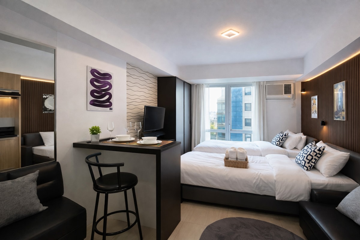 ¡Bienvenido a tu refugio urbano en el corazón de Cebú! Descubre la comodidad y el estilo en nuestro espacioso estudio con características clave como lujo espacioso, comodidad céntrica, vistas impresionantes y comodidad moderna, lo que te permite sumergirte en un estudio abierto y espacioso diseñado para la vida moderna. El diseño inteligente maximiza el espacio, proporcionando un ambiente cómodo y acogedor. Ya sea que estés aquí por negocios o por placer, nuestro estudio ofrece la combinación perfecta de comodidad y sofisticación.