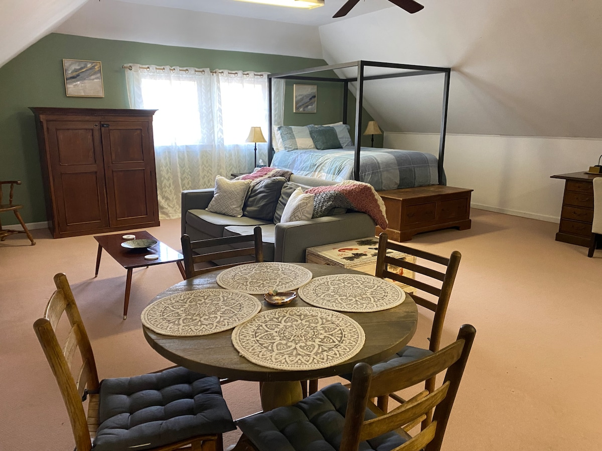 ¡Un ambiente bohemio SÚPER LINDO con perros! Zona VALLADA justo fuera de tu puerta, ideal para 2 adultos/2 niños/perro(s) amistoso(s), rutas de senderismo por todas partes, centro recreativo a 1 milla de distancia, cocina tranquila y eficiente, parrilla/fogata al aire libre para los huéspedes. Estamos rodeados de bosques, ciervos y pájaros cantores. El estudio está en la planta baja de la cabaña de troncos, donde viven los propietarios, por lo que apreciamos a los huéspedes respetuosos. Estamos a 3 millas de Beech Mountain Resort: esquí en invierno, senderismo/ciclismo de descenso, campo de golf de disco, cervecería, tarifa por mascota a pagar a la llegada.
