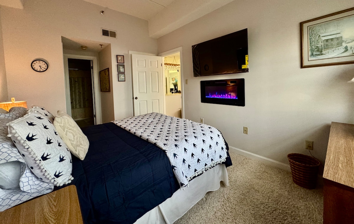 Tómate un descanso y escápate a un pequeño apartamento con encanto de estilo europeo. «Snowden» en Sugar Mountain está a poca distancia a pie de tenis, golf, telesillas, patinaje sobre hielo y tubing. La chimenea de gas de piedra y la cocina totalmente equipada te permiten calentarte después de un día de invierno al aire libre. Entrada con teclado electrónico para llegada autónoma. Lavadora/secadora apilable. Balcón privado. A solo minutos de Banner Elk, Grandfather Mountain, restaurantes, tiendas de comestibles y atracciones de la zona.