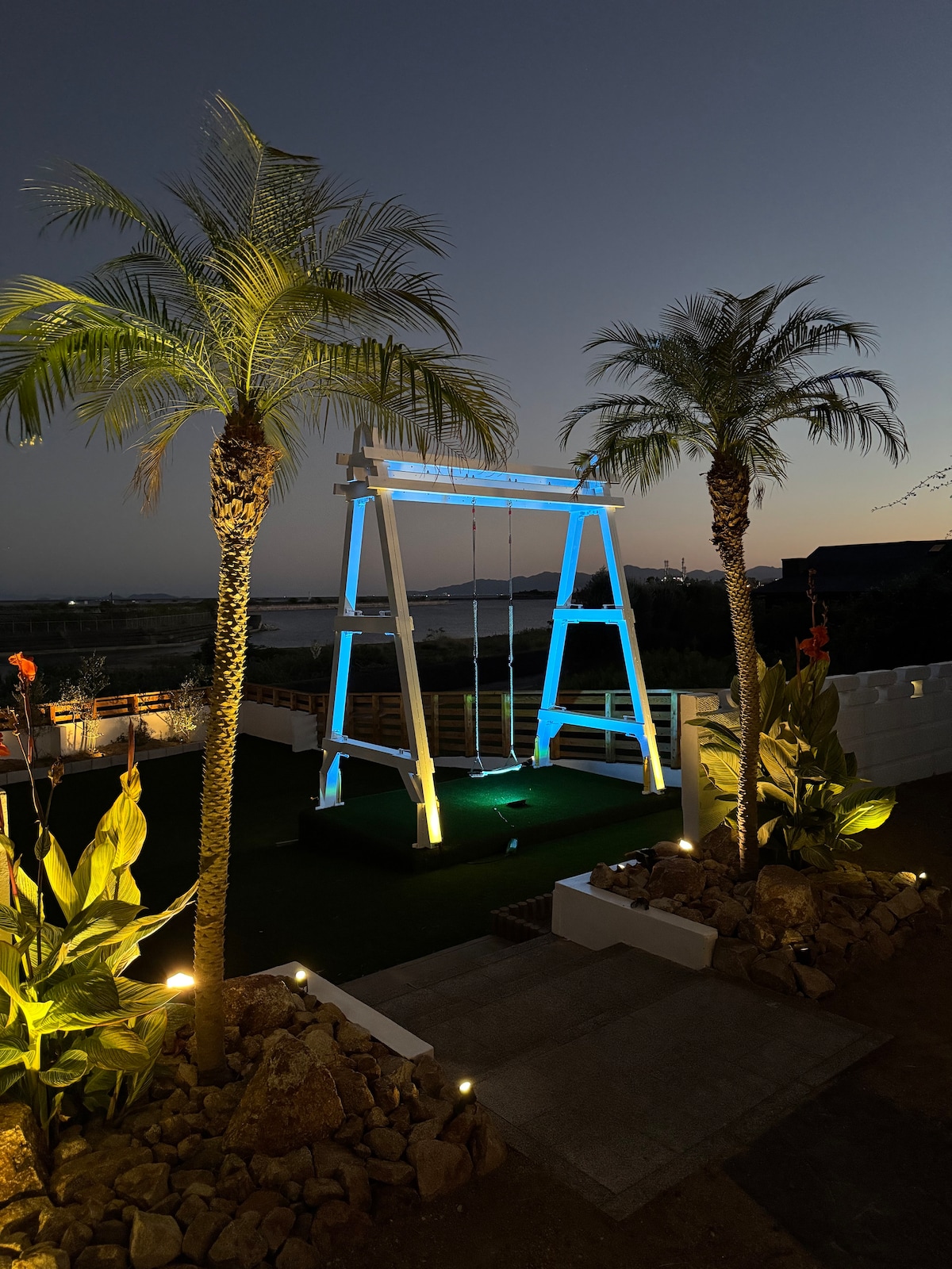 施設からビーチまで徒歩2分。 目の前には瀬戸内海が広がり、夕方は沈んでいく夕陽を、朝は日の出を味わうことが出来ます。 屋外には貸切プール、焚き火台、BBQコンロが完備しております。 焚き火セットとBBQセットを無料でご提供しております。 焚き火・BBQセット: ・薪1束 ・着火剤 ・軍手 ・ガスバーナー ・BBQコンロ2台 ・炭6kg 室内はキッチンスペース・調理器具を完備しており、快適にお過ごしいただけます。調味料や食材はご持参ください。 2階の寝室から見える眺望は絶景で、目覚めた瞬間から瀬戸内海の穏やかな波と島々を独り占め。 瀬戸内海は海特有の”磯の匂い”がほとんどせず、海に入ってもベタベタしない、非常にサラサラとした心地良い潮です。 波打ち際での時間もお過ごしください。