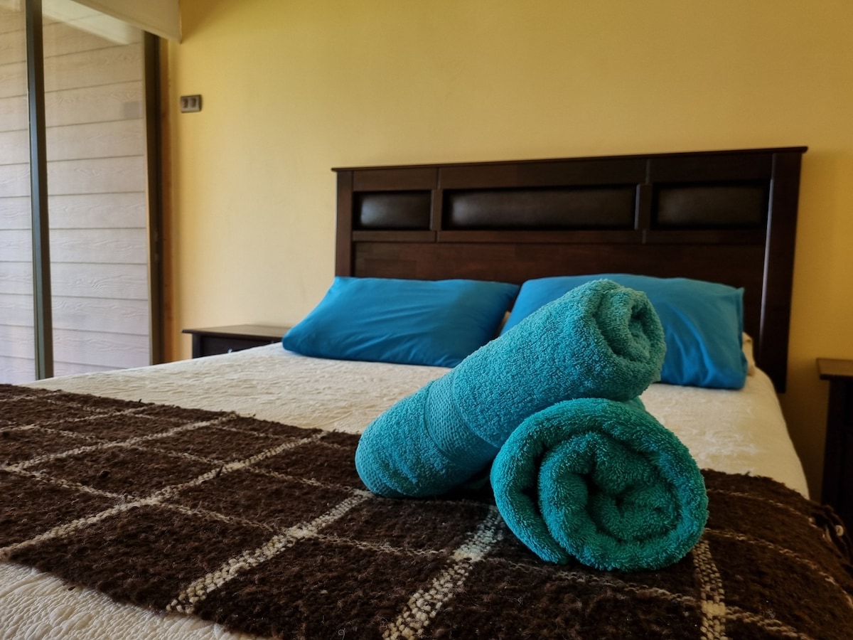 Piso 1 de casa con aislamiento térmico, sector residencial. 3habitaciones equipadas para 6 huéspedes. CON INGRESO Y SERVICIOS INDEPENDIENTES, Y ESTACIONAMIENTO INTERIOR PARA 1 VEHÍCULO. Supermercado y locomoción a una cuadra. Totalmente equipado para una tranquila, segura y acogedora estadía. Calefacción a leña entregada diariamente por sus anfitriones. Estacionamiento interior. Atendido por sus dueños, con disponibilidad de apoyo para hacer de tu estadía una excelente experiencia.