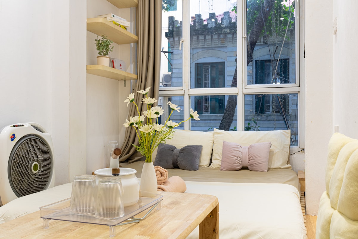 Habitación minimalista con vista a la villa francesa a 5 minutos de Hoan Kiem