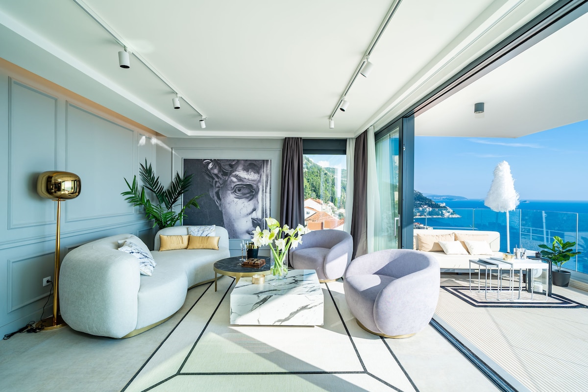 Un apartamento de nueva construcción, lujoso y espacioso, en una ubicación perfecta, con espectaculares vistas panorámicas, disponible para cuatro personas. Decorado con un alto nivel, con todas las comodidades modernas, este apartamento cuenta con dos acogedores dormitorios, dos baños bien equipados y un cómodo vestidor. También hay una cocina totalmente equipada y una elegante sala de estar que da a un precioso balcón con vistas únicas a las emblemáticas murallas de la ciudad de Dubrovnik y al mar Adriático. Plaza de aparcamiento privado gratuita.