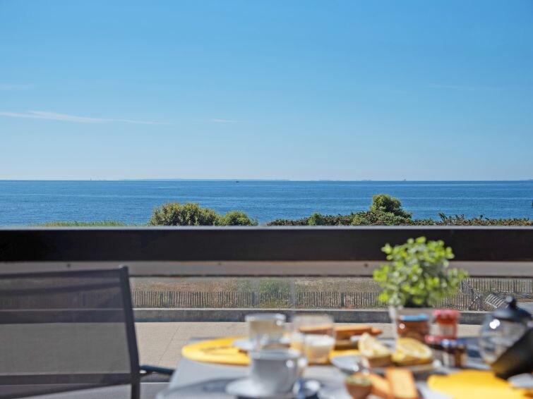 Apartamento F2 de 42 m2 con terraza de 25 m2, sin vecinos, orientado al sur en una residencia tranquila y segura. Todas las comodidades, cocina equipada, baño separado, plaza de estacionamiento privado. Cama para un bebé o un niño pequeño. Se proporciona ropa de cama. WI-FI. A 3 minutos a pie de la gran playa, Casino Juegos, piscina. A 2 minutos en automóvil de la Talasoterapia. Cerca del centro de la ciudad y del embarcadero para las islas. Local de bicicletas. Limpieza no facturada, por lo tanto, a cargo del inquilino que se va.