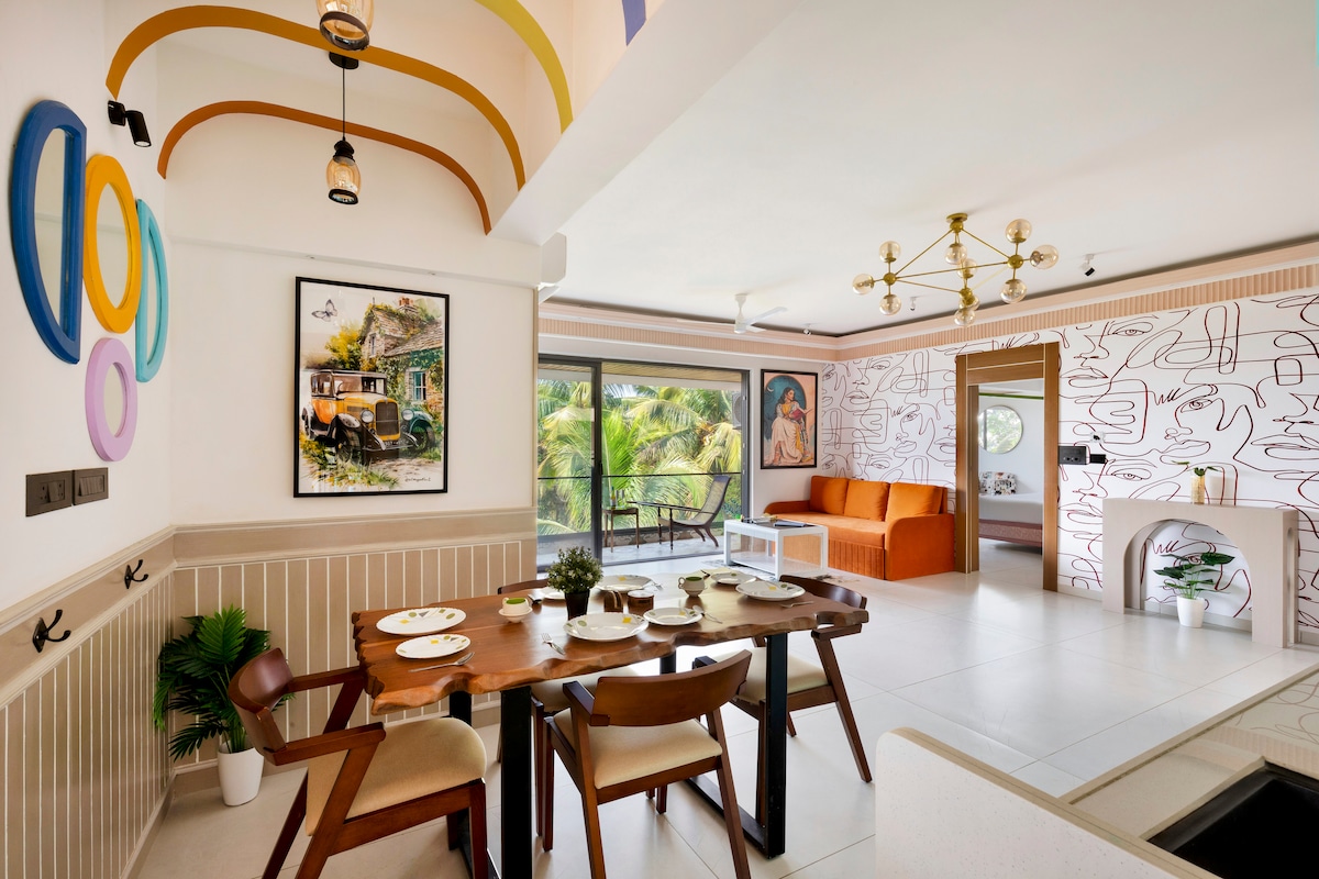 This peaceful and stylish 1BHK Apartment - part of Susegad Suites in Goa - is located in Riviera Hermitage - a part of the 5 star, DoubleTree Hilton complex. The compound is ultra safe, with multiple layers of security (Hilton + Riviera), and features a large swimming pool surrounded by sprawling manicured lawns. 💡NOTICE: The pool is scheduled to be closed for renovation between 6th April and 10th May 2026. Do check out the discounted rates for this period!