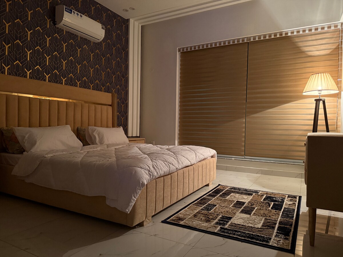 Apartamento de lujo 1BHK totalmente amueblado para parejas, amigos, mujeres solas y familias, así como ubicado en una zona tranquila y privada en Talha Block, donde todo está a poca distancia a pie en el corazón de Bahria Ubicación privada y segura - Llegada autónoma con código PIN. - No hay necesidad de conocer a nadie y no hay recepción. - Seguridad las 24 horas, 7 días a la - Diseño estético moderno - Cama tamaño king con colchón de muelles suaves. - Aire acondicionado - Solo cocina seca. - Aparcamiento gratuito en la calle. - Ubicación privilegiada