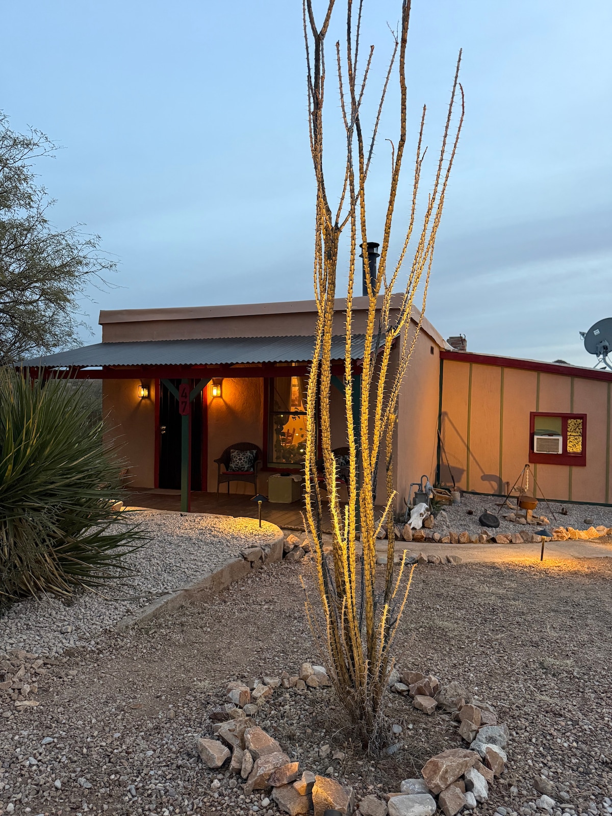 Fabulous porch with swing, glider and room to feed the whole family while watching hummingbirds at your feeder. One of a kind woodwork. 1326 sf of indoor living space. Central AC/heat. Walking distance to Coronado National Forest hiking trails.