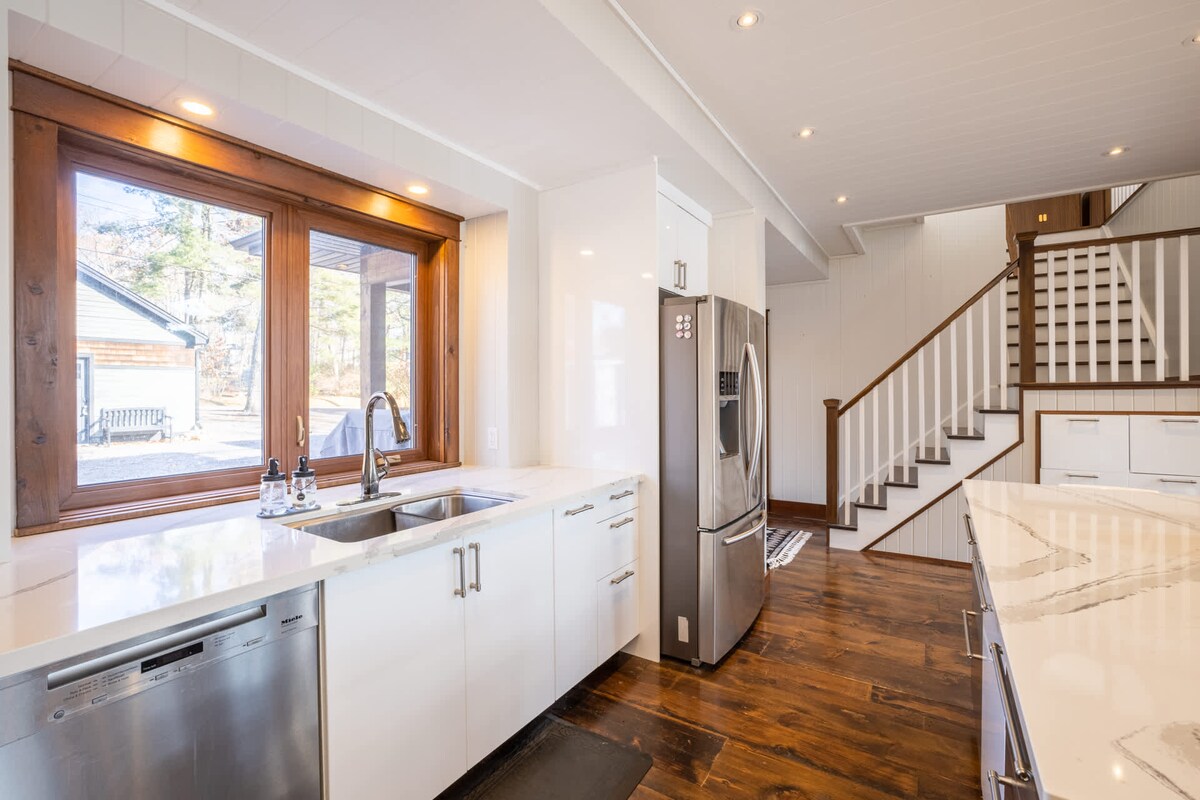 Escápate a Aux Box, una cabaña boutique de lujo enclavada en los bosques de Muskoka con vistas serenas al río. Diseñado para la comodidad y el estilo, cuenta con calefacción en el piso, gabinetes personalizados y comodidades de primera calidad. Entra en tu spa nórdico privado con sauna, jacuzzi y chapuzón frío para la máxima relajación. Disfruta de un aislamiento total mientras estás a menos de 10 minutos de las tiendas, los restaurantes y el encanto del centro de Huntsville. Una combinación perfecta de naturaleza y lujo te espera.