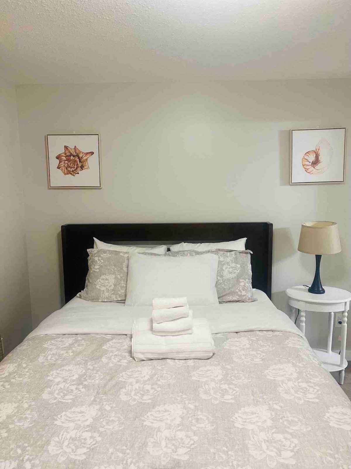 Disfruta de la comodidad y conveniencia que ofrece esta acogedora suite en el sótano en la tranquila zona de Greens. Crea recuerdos inolvidables en esta villa única ideal para familias. Está a 5 minutos en coche de Costco y a 8 minutos en coche de Walmart y Superstore. Este espacio superlimpio tiene una cómoda cama tamaño queen y aparcamiento gratuito. Cuenta con internet de alta velocidad de 325 Mbps wifi, TV inteligente de 40 pulgadas que incluye acceso a Prime Video y Netflix. La cocina pequeña tiene elementos esenciales como microondas, nevera, jarra de agua caliente, cafetera y tostadora.