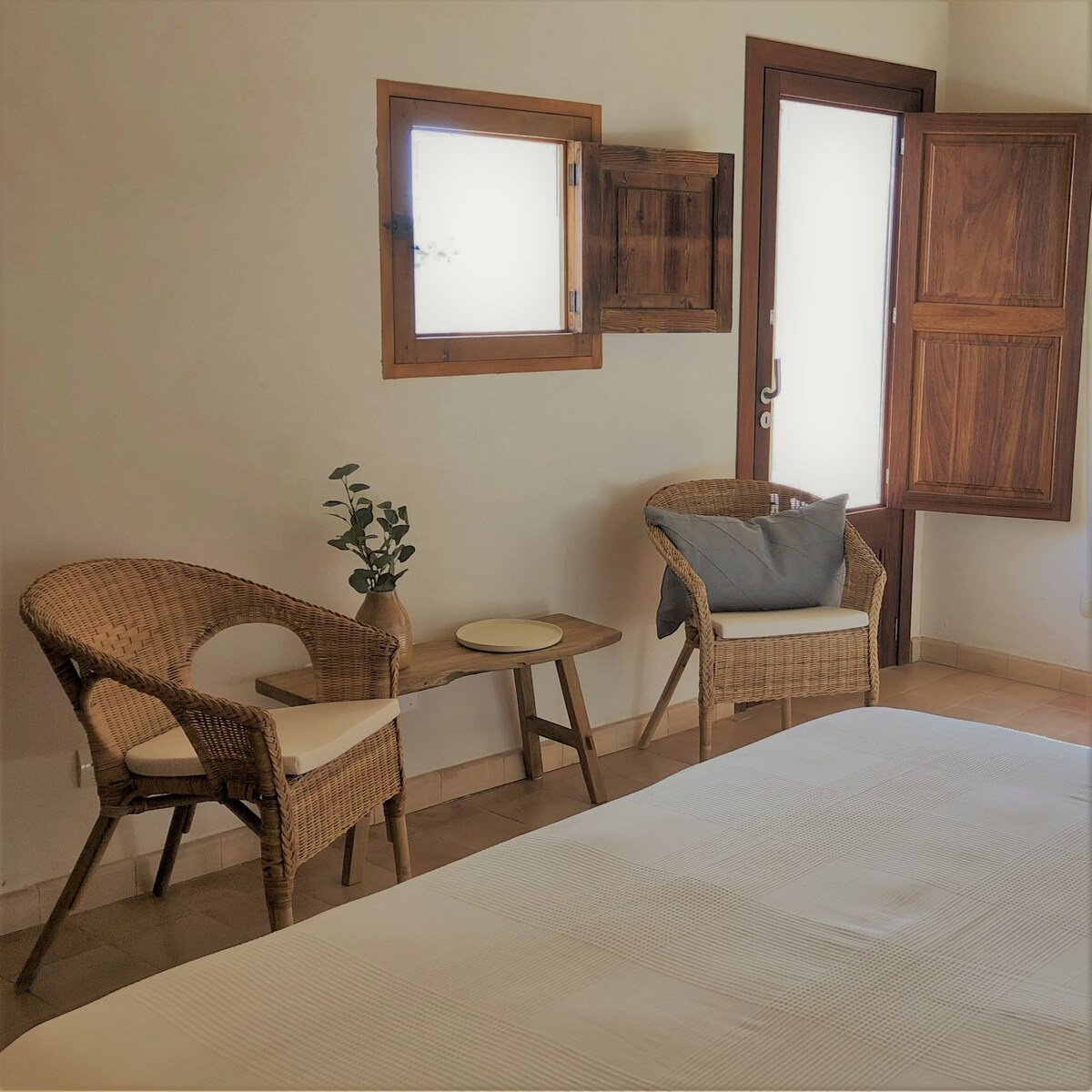 Inspired by the natural beauty of Mallorca’s countryside, this Suite (upper floor) offers a harmonious blend of rustic charm and rural simplicity. Agroturismo Finca Son Pieras (XVI century) is located in hidden Llucmajor, just 15 min from the airport & 10 min from stunning beaches. A place to unplug & recover yourself. Breakfast with local & fresh products included every morning. Art Gallery, Café & Wine Bar on site. Be inspired, be creative.