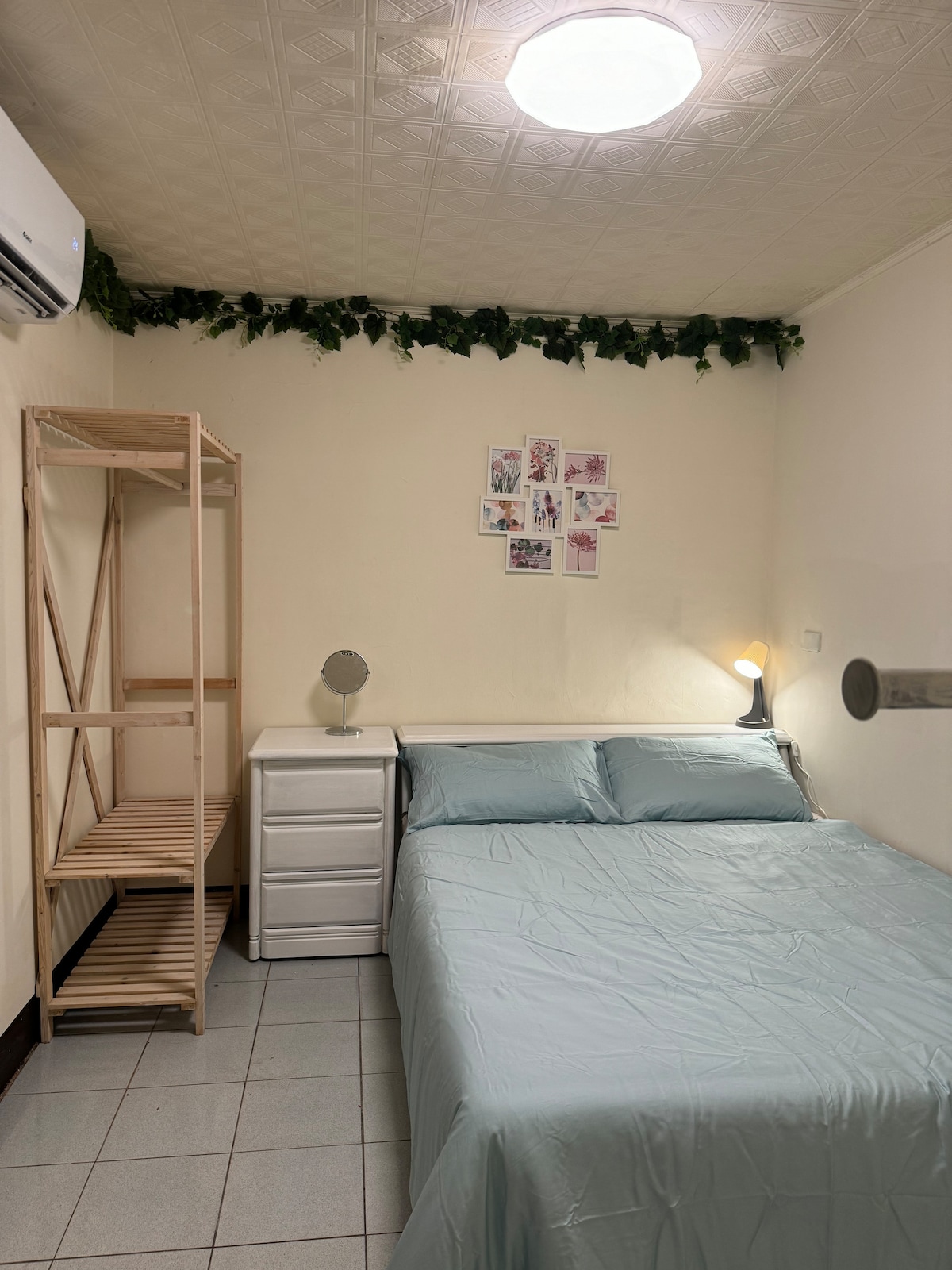 Relájate con tu familia en este lugar tranquilo para hospedarte.El primer piso de la casa de familia es conveniente para que toda la familia entre y salga de la puerta de forma independiente, y hay residentes amables cerca, fáciles de tratar.Cerca del mercado nocturno/mercado de verduras/MRT/tienda por departamentos/varios restaurantes, fácil de caminar a lo largo del río Tamsui.