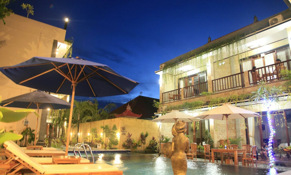 Este alojamiento con estilo es perfecto para viajes en grupo. Es uno de los quince apartamentos/estudios de una hermosa posada boutique familiar. El estudio es una unidad autosuficiente en un barrio seguro y exclusivo. Consta de un dormitorio grande y una sala de estar que te ofrece espacio adicional para dormir y relajarte, cocina/comedor y piscina en un jardín con patio compartido. Este estudio tiene un diseño interior fresco y se encuentra en el centro de Seminyak, a solo unos pasos de la playa.