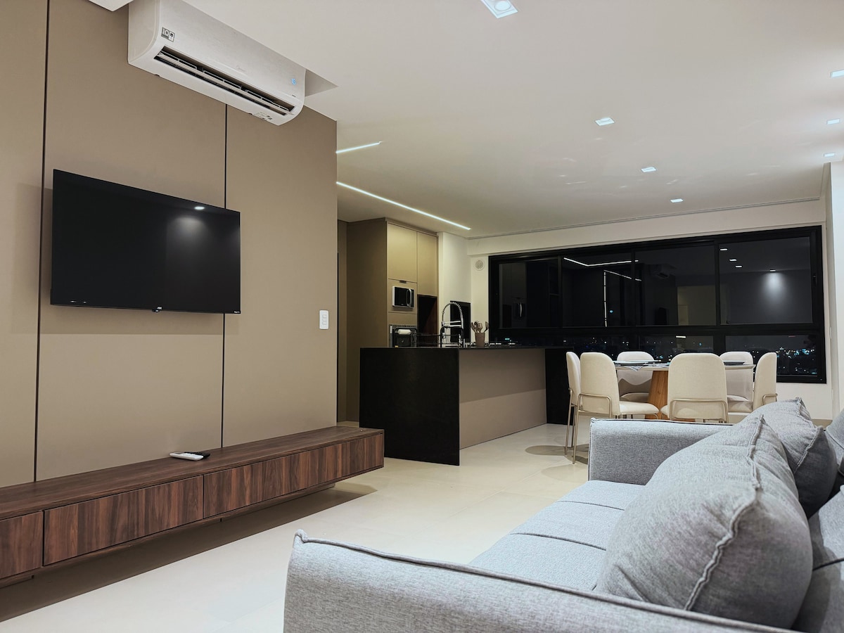 Diviértase con toda la familia y amigos en este lugar lleno de estilo. Apartamento cuidadosamente diseñado con diseño arquitectónico y luminotécnico para su mejor comodidad y días increíbles. El espacio fue pensado y creado para que tenga la comodidad y todos los elementos necesarios para una estancia perfecta, ya sea de vacaciones, descanso o trabajo para que se sienta como en casa. Situado en Barra Sul, uno de los más populares y concurridos de la ciudad, también conocido como el «Dubái brasileño». .