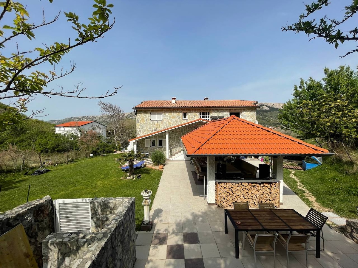 ¡vacaciones DE ensueño! Villa con piscina para 9 personas, 4 habitaciones, 2 baños, 2 cocinas y 2 comedores. Disfruta de una terraza de 300 m2 con hermosas vistas del mar y de las islas Kvarner. Barbacoa, 6 plazas de aparcamiento y total privacidad a 5000 m2 de jardín. Primeros vecinos a 1 km de distancia. Idealmente ubicado, a solo 20 km al sur de Senj o a 30 km al norte de Karlobag. ¡Reserva tus vacaciones paradisíacas ahora y disfruta de total privacidad y relajantes sonidos de la naturaleza!