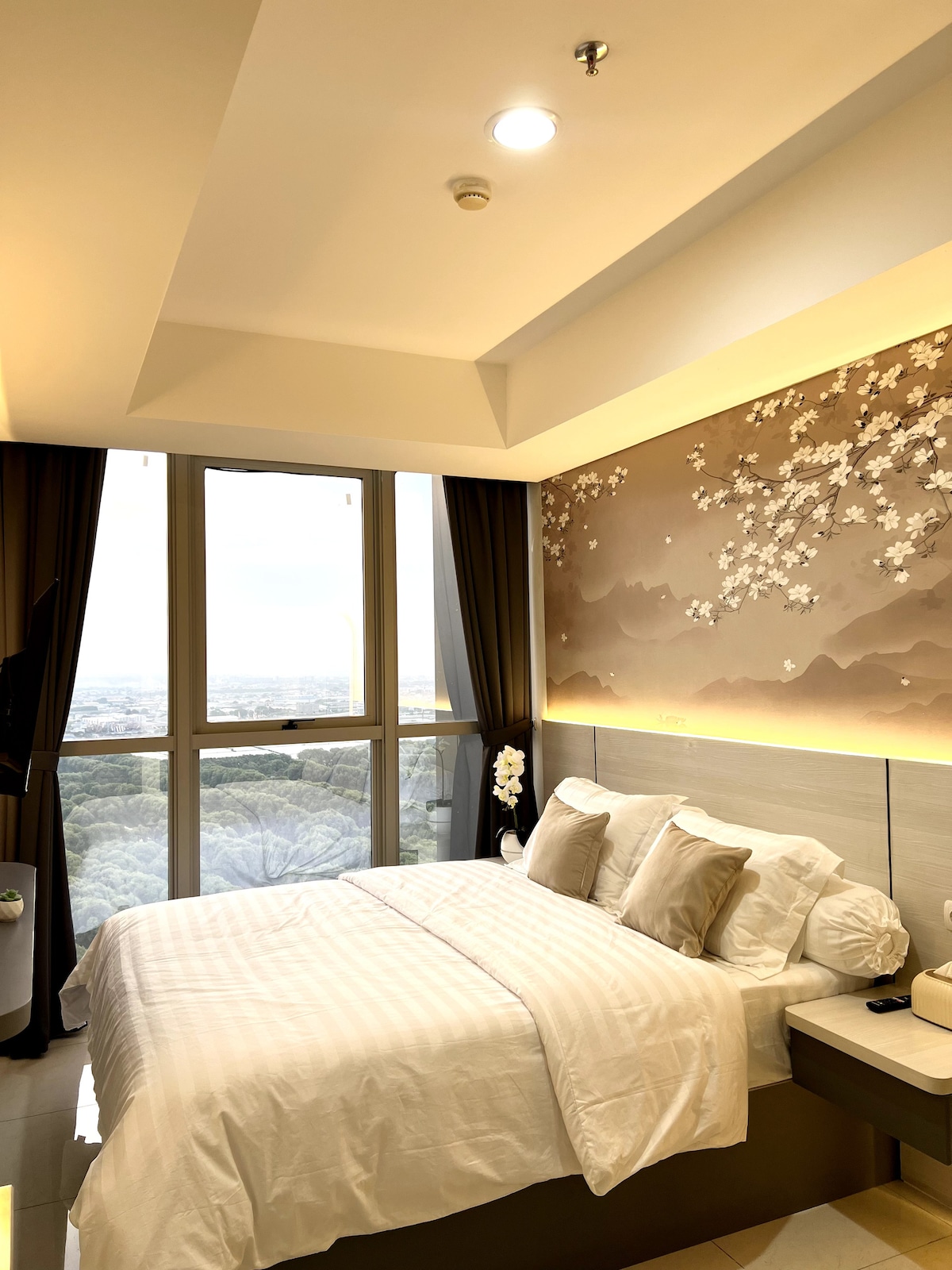 Bienvenido a la mezcla perfecta de estilo, comodidad y conveniencia en nuestro lujoso apartamento de dos dormitorios ubicado en el corazón de BSD City. Este moderno apartamento de dos dormitorios ofrece un refugio tranquilo con vistas al exuberante parque botánico y al lago sereno, perfecto para parejas, familias pequeñas, nómadas digitales y viajeros de negocios. En cuestión de minutos, puedes llegar a The Breeze (restaurante, estilo de vida y entretenimiento), Green Office Park, AEON Mall, ICE, EKA Hospital, Grand Lucky y mucho más.