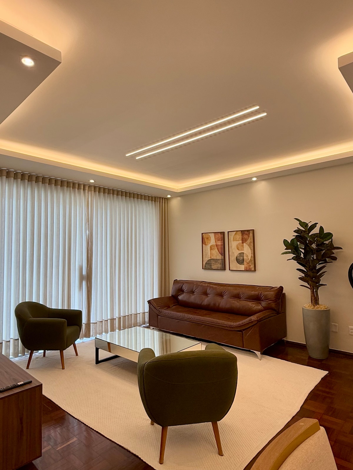 Desfrute de uma experiência premium com vista panorâmica de Belém. O Studio se destaca pela funcionalidade: a divisória com porta separa o quarto do estar, oferecendo privacidade superior. Relaxe na cama de casal ou no sofá-cama confortável (ideal para o 3º hóspede). O entretenimento é garantido na Smart TV 65", que inclui Netflix Premium no plano. A cozinha é completa e o Studio oferece chuveiro elétrico, secador de cabelo e ferro. Sua tranquilidade é completa com a garagem coberta exclusiva.