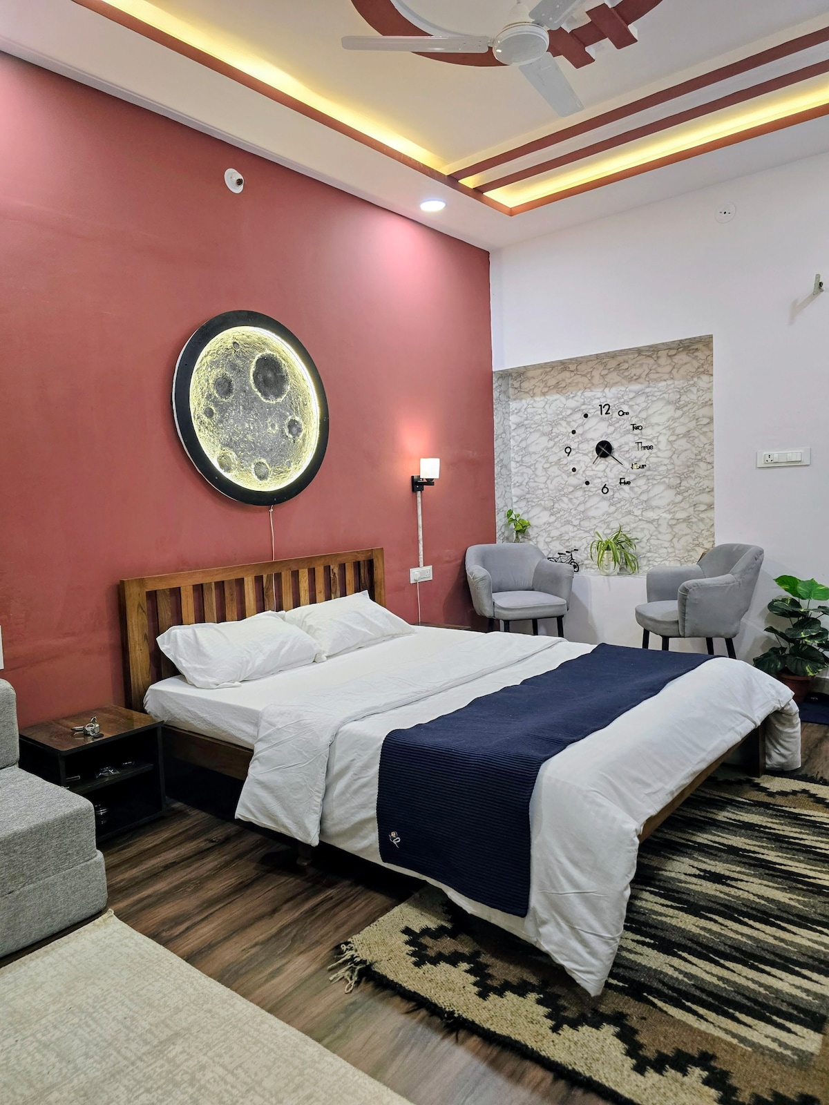 Disfruta de una estancia tranquila en una habitación bien amueblada """"SIN AIRE ACONDICIONADO"""" con cama doble cerca del lago Fatehsagar. El espacio cuenta con 1 cómoda cama doble, un baño limpio y un inodoro. Las comodidades incluyen wifi, limpieza a pedido y estacionamiento gratuito. Perfecto para una escapada relajante con fácil acceso a los mejores lugares de Udaipur.