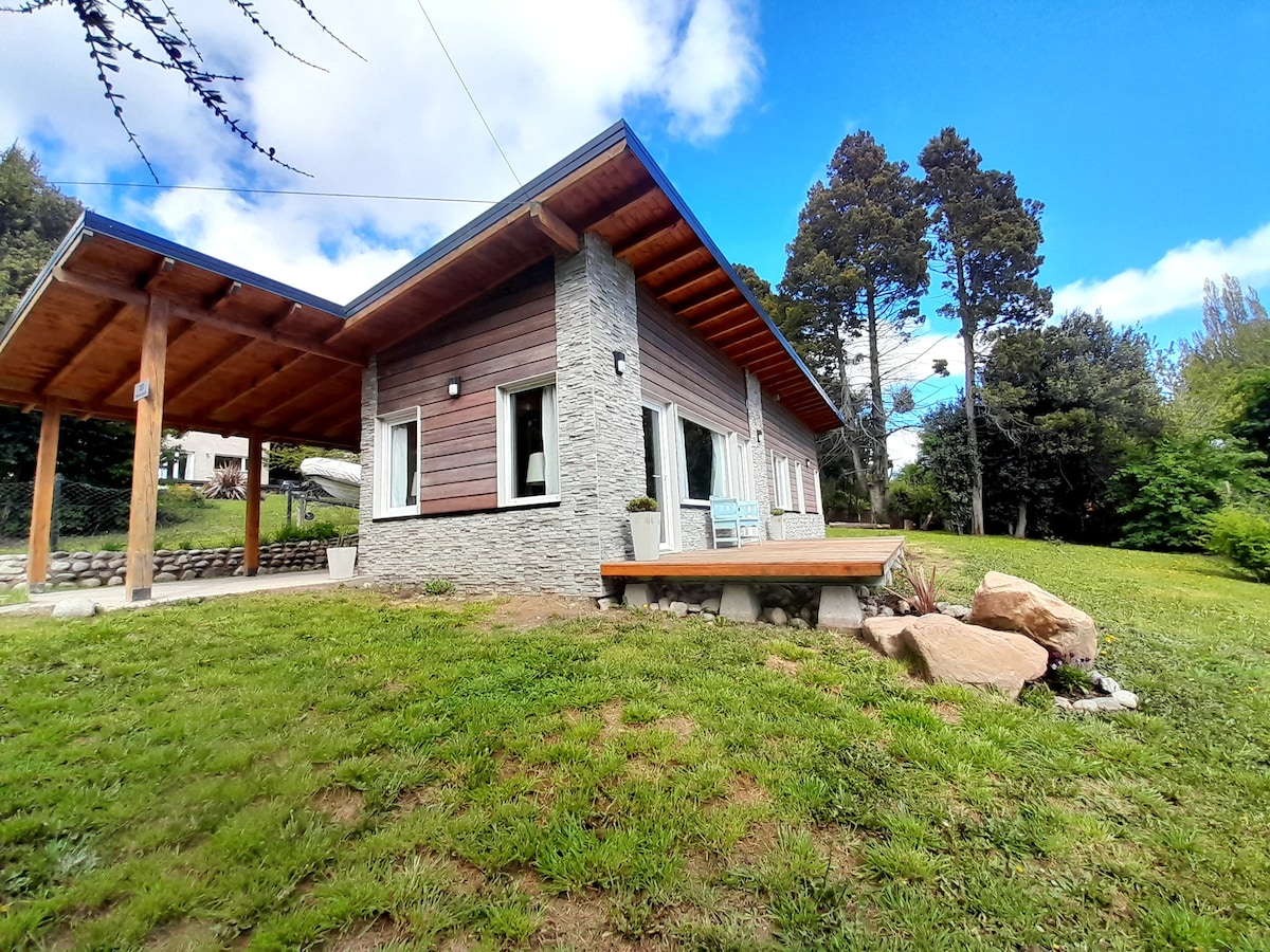 Lugar ideal para descansar y disfrutar de la naturaleza. La casa es nueva, cálida y confortable, con hermosa vista al lago, amplio jardín y salida a la playa del lago Nahuel Huapi. Entrada para auto con portón automatico .Deck, parrilla. Comparte terreno con la casa de los dueños . A 6 km del centro y 6 km de Dina Huapi donde hay comercios para abastecerse . Casa de alquiler turístico (5 C.A.T.) Disposición turística 119/2016 .