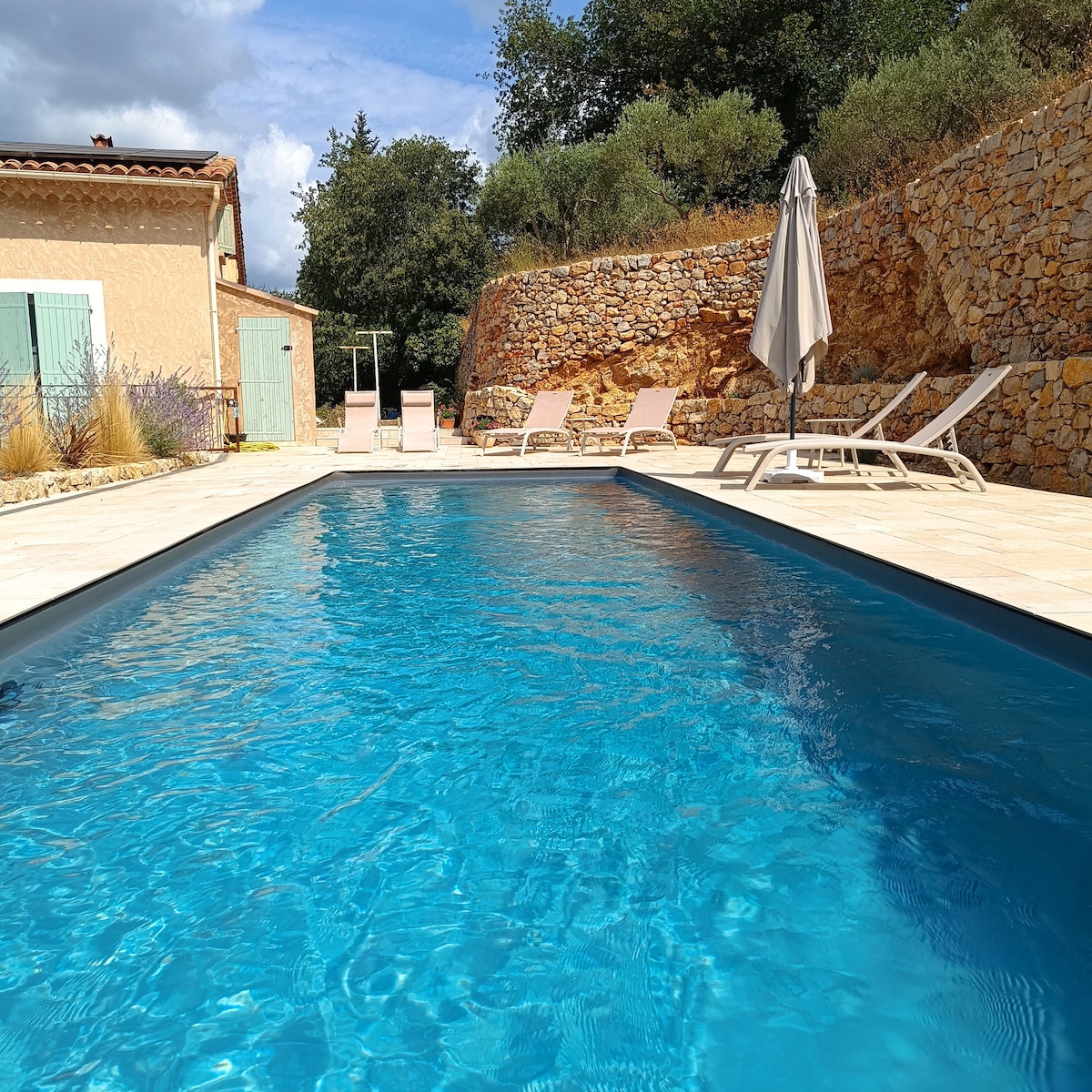 Gîte indépendant sur 3 niveaux, (65m2) entièrement restauré dans une ancienne ferme au milieu de la forêt. Niveau 1 : cuisine équipée donnant sur la terrasse Niveau 2 : salle de bain, et couchages(2 x90) Niveau 3 : chambre mansardée lit 140 Piscine accès direct ( juin à septembre ) Animaux de la ferme :ânes, poules et chat Les ânesses sont dans un parc électrifié autour de la maison. À 1h de la mer, 3/4h des gorges du Verdon .