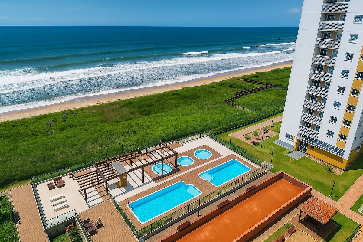 🌴✨ ¡Despierta con el sonido del mar y una vista impresionante! 🏖️ Apartamento frente al mar 🌊 - Acceso directo a la playa 🏊 Piscinas para adultos y niños 🍖 Churrasqueira con vista al mar 🎯 Brinquedoteca y canchas deportivas 🧺 Enxoval completo: ropa de cama y toallas desinfectadas Kit de playa ⛱️: sillas de playa, toallas de playa y sombrilla disponibles para que disfrutes de cada momento con comodidad. ✨ Ideal para parejas, familias o amigos que buscan descanso, ocio y tranquilidad.