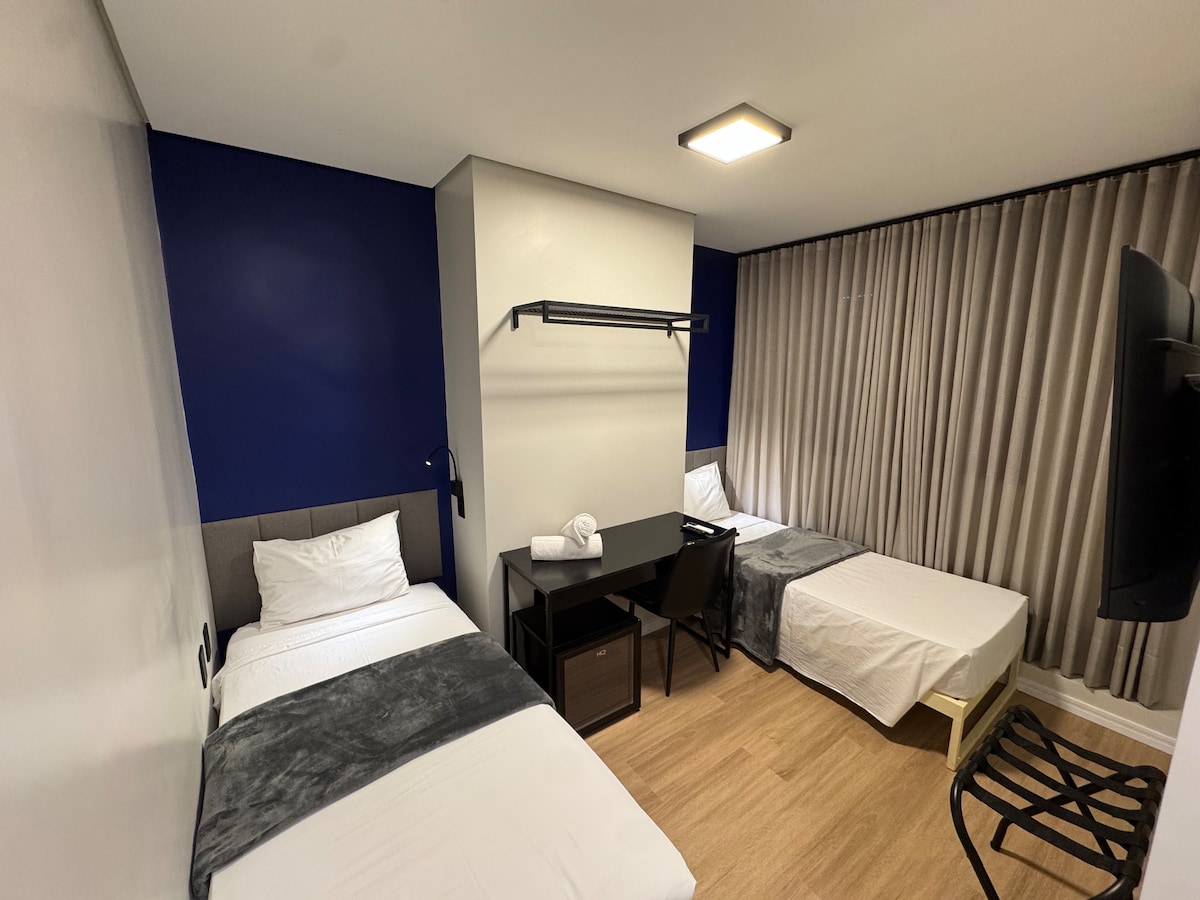 Alojamiento acogedor y sofisticado en nuestra suite económica superior, equipada para ofrecer la mejor experiencia a nuestros huéspedes. Aspectos más destacados del alojamiento: Cama ✔ queen ultra cómoda ✔ Wi-Fi gratis ✔ Aire acondicionado para tu total comodidad ✔ Televisión inteligente de 32 pulgadas con acceso a streaming ✔ ° Minibar; ✔ Cafetera Nespresso, tazas y vasos ✔ Platos y cubiertos en las habitaciones ✔ Espacio de trabajo ✔ Caja fuerte ✔ Secadora de pelo y plancha de vapor ✔ Ropa de cama y toallas de baño