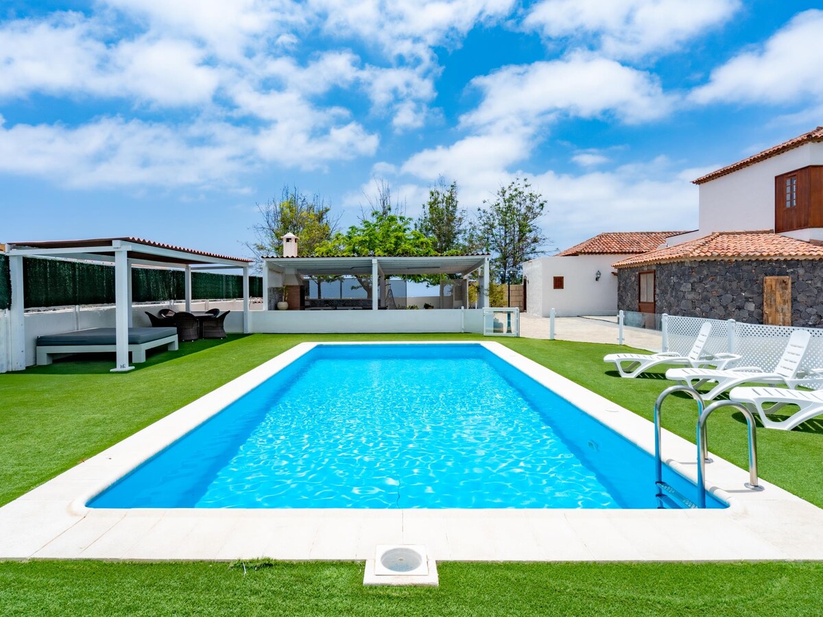 Casa de estilo canario con vistas al mar, terraza y piscina