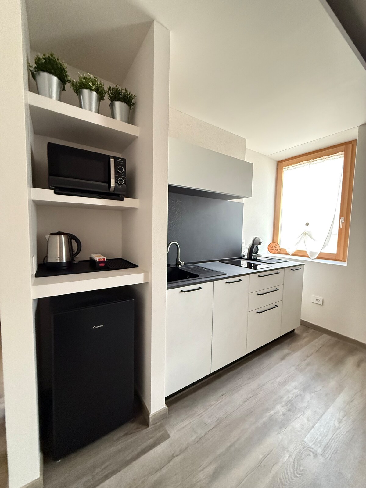 Departamento estudio libre de crueldad, acogedor e independiente para una estancia vegana abierta a todo el mundo. Tiene baño privado y cocina pequeña. Cada detalle está diseñado con respeto por los animales y el medio ambiente: sin plumas de ganso y productos de limpieza no probados en animales. El desayuno es de autoservicio: encontrarás té, café, leche vegetal, yogur, muesli, etc., y una selección de productos veganos. Por respeto a todos, la cocina pequeña es solo para preparar alimentos de origen vegetal. Código de Identificación Nacional (CIN) IT014076C1NWIWXHS2